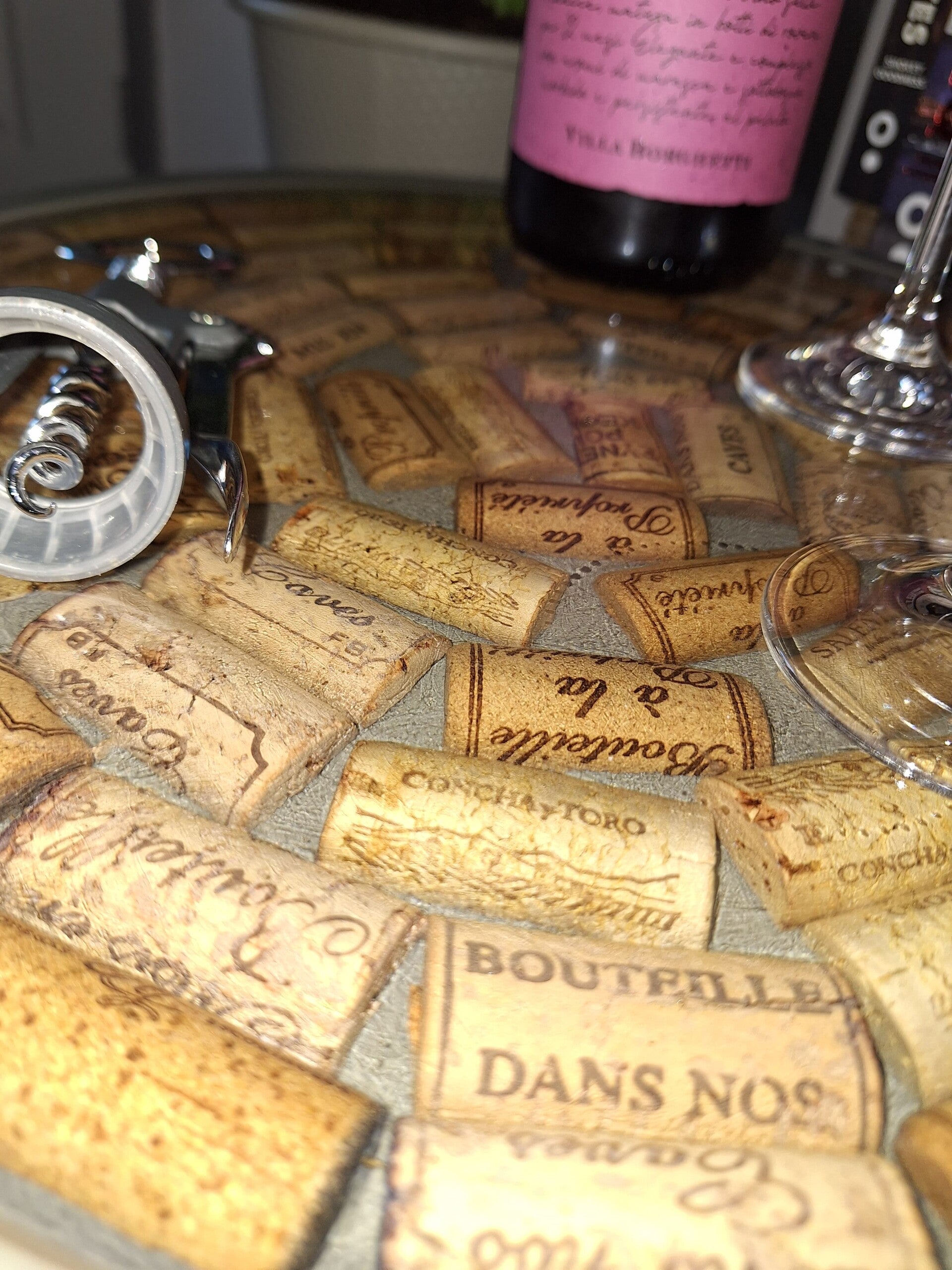 Kurken bijzettafel Epoxy kunstwerk wijn/ wijnkurken